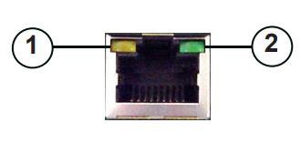 Die gelb/orange LED (1) an der Buchse leuchtet, sobald eine Verbindung zu einem Netzwerk, Switch, Hub o.ä. vorhanden ist. Die grüne LED (2) an der Buchse blinkt, sobald ein Datenaustausch stattfindet.